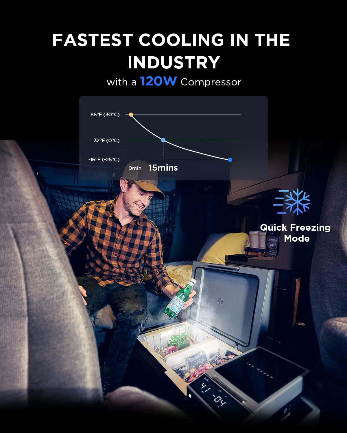 • Industry's First Integrated Ice Maker In addition to freezing. this portable car refrigerator can also bring you 18 solid ice cubes in 12 minutes by a 120w powerful compressor